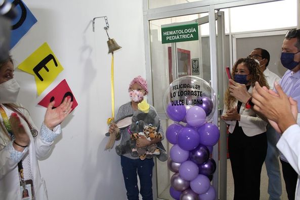 Después de siete meses de tratamiento en el Centro de Referencia Estatal para la atención del Niño y la Niña con Cáncer (OncoCREAN) del HGR No. 1 del IMSS Morelos, por un diagnóstico de un tumor germinal gonadal mixto de ovario derecho, Dulce “N”, concluyó su tratamiento y tocó la campana de la victoria.