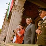 Como primer acto, el edil acompañó al secretario de Gobierno, Juan Salgado Brito, quien acudió en representación de la gobernadora Margarita González Saravia, durante la ceremonia solemne de izamiento de la Bandera Nacional, que marcó el inicio de la jornada cívica.