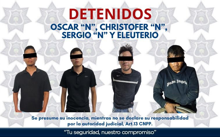 Oscar “N”, Christofer “N”, Sergio “N” y Eleuterio “N” fueron puestos a disposición del Ministerio Público, instancia que determinará su situación jurídica conforme a la ley.